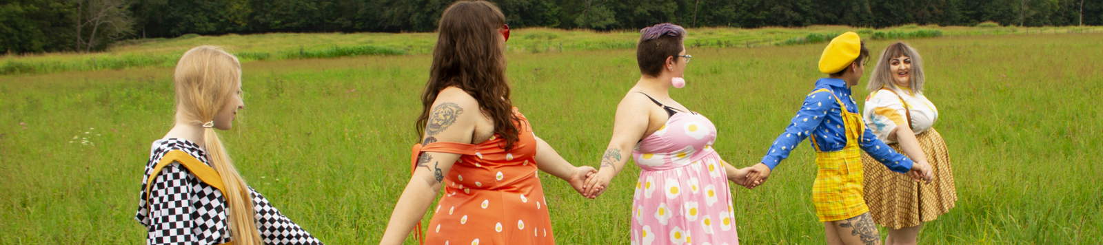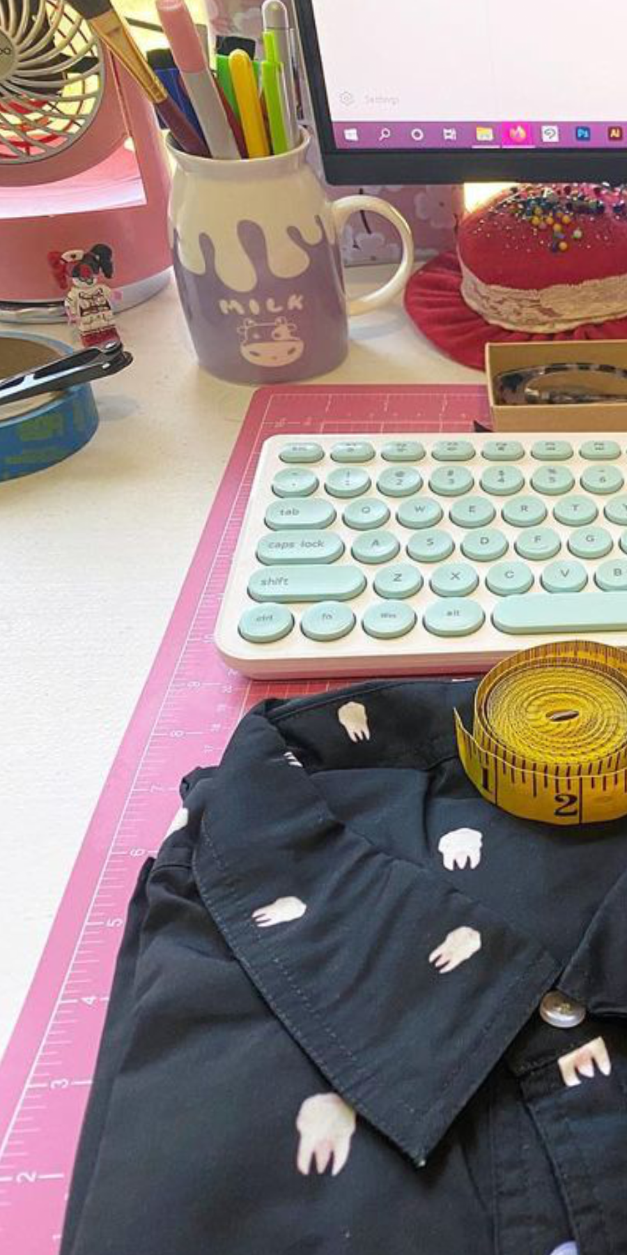 I started selling my work under the name Trash Queen online in 2014, and started out just selling a few small accessories. As the shop grew, I was able to sell t-shirts, and then more complex garments, like skater dresses, skirts, and tights! Every year the business and my vision for it grows a little bit more.